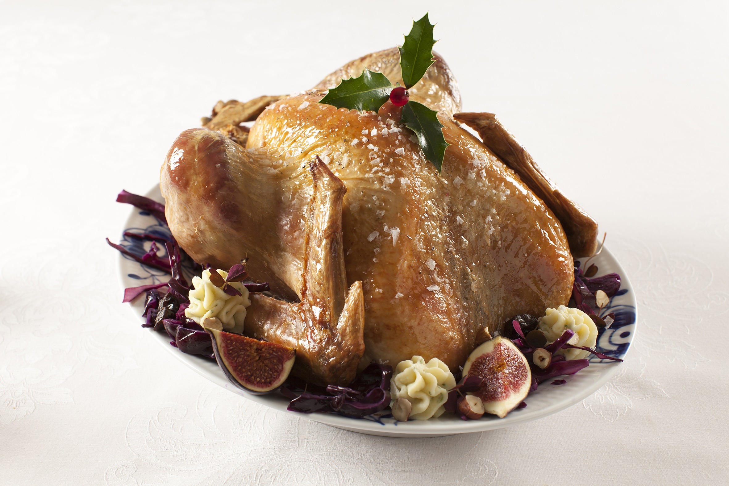 Når du bestiller og køber en farseret kalkun hos slagter Jacob så er den krydret og klar til at sætte i ovnen. Den skal blot have lidt salt og peber på ydersiden. Forvarm ovnen til 160°C. Smelt lidt smør og pensl hele kalkunen med det smeltede smør, før den kommer i ovnen. Alternativt lægges spæk i tynde skiver hen over bryststykket. På den måde kommer der en god saftighed i brystkødet. Steg kalkunen i cirka 3½ time. Der skal opnås en kernetemperatur på 75°C i overlåret. Pas på at den ikke får længere tid, da den så kan risikere at blive tør i kødet. Bliver kalkunen for brun under tilberedningen kan den dækkes med stanniol. Efter endt tilberedning har kalkunen godt af at trække i 1 times tid inden udskæring. Pak den ind i stanniol og viskestykker.