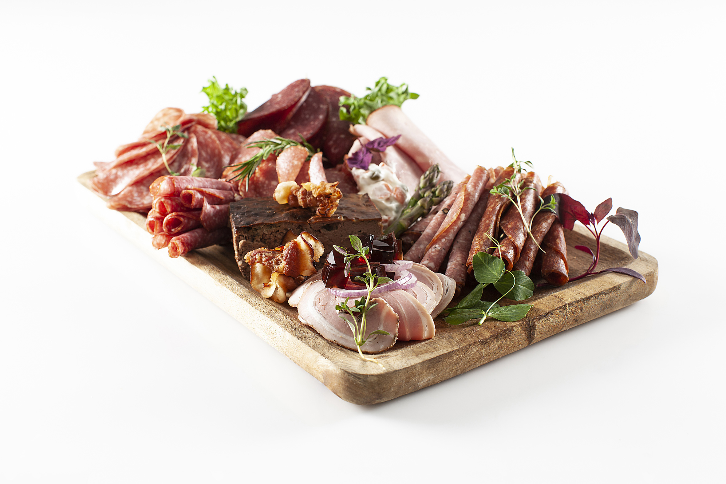 På det lille Pølsebord er der 10-12 forskellige hjemmelavede pålægspølser